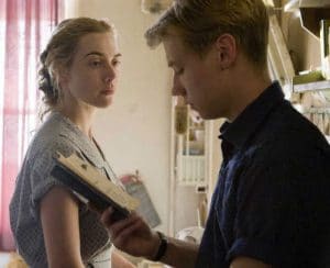 À Neustadt en 1958, Michael Berg, un lycéen de 15 ans, a une liaison d’un été avec Hanna Schmitz, une contrôleuse de tramway qui a plus du double de son âge. Elle lui demande de lui faire la lecture lors de chacune de leurs rencontres, et il lui lit des œuvres de genres variés, comme L’Odyssée, Guerre et Paix, Les Aventures de Huckleberry Finn, Tintin, L’Amant de lady Chatterley ou La Dame au petit chien. C’est son premier amour, leur relation physique est intense, Hanna ne livre rien d’elle-même. Lors d’une escapade de deux jours, dans une église, Hanna fond en larmes. Après avoir appris sa promotion à un emploi de bureau, Hanna part sans prévenir Michael qui est anéanti, il ne la revoit qu’en 1966. Il est alors étudiant en droit et se destine à devenir avocat. L’un de ses professeurs l’emmène avec quelques camarades assister au procès d’anciennes gardiennes SS (Aufseherin) d’Auschwitz… .» (Wikipedia)