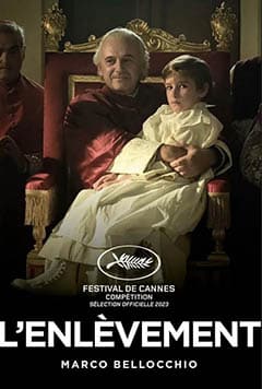 Ce film a été réalisé par Marco Bellocchio. Il dure 2h 5m et sera projeté en français. Il a été sélectionné pour les césars 2024 et Cannes 2023. Il est très bien coté sur Allociné (4.1/5) et sur Rotten Tomatoes (81%). Le film a fait l’objet d’une critique dans le Devoir: https://www.ledevoir.com/culture/cinema/814407/critique-cinema-enlevement-divine-ignominie