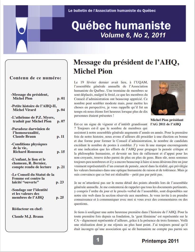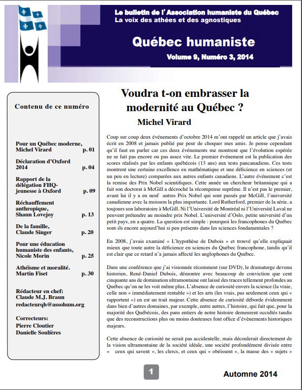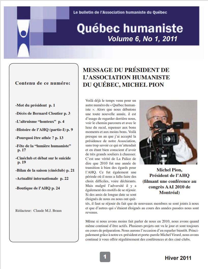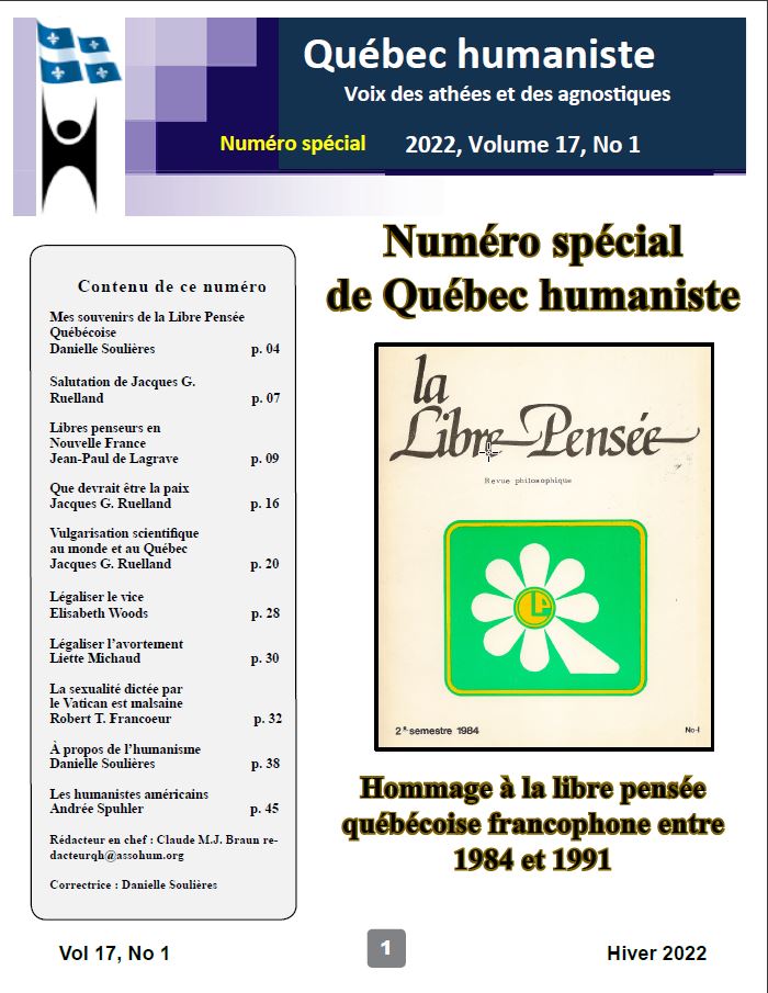 - Histoire de l’humanisme francophone organisé et militant au Québec