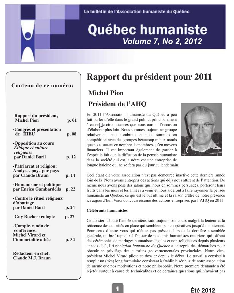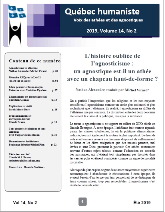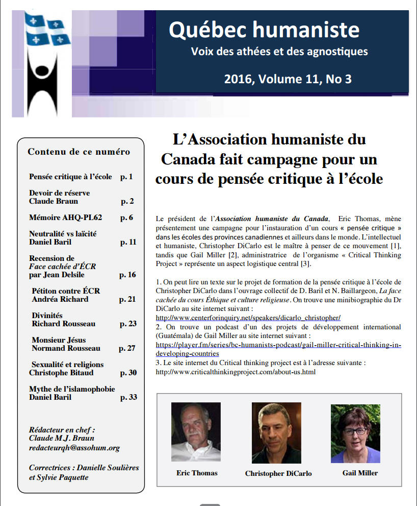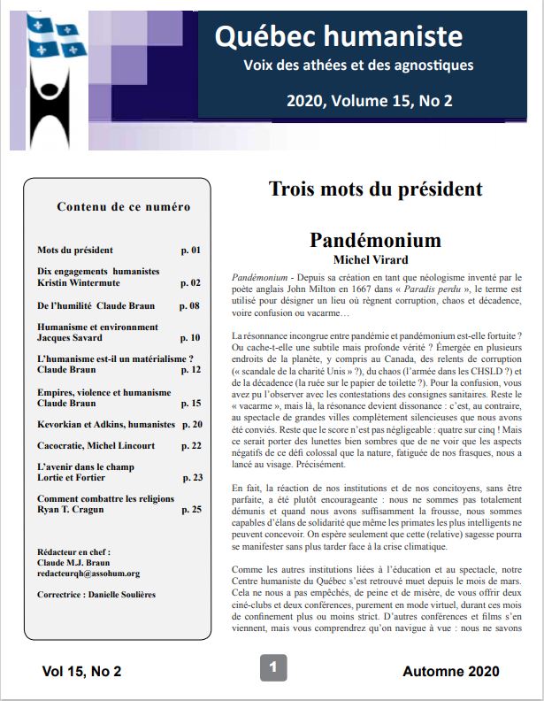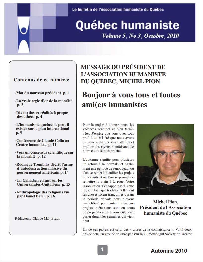 - Histoire de l’humanisme francophone organisé et militant au Québec