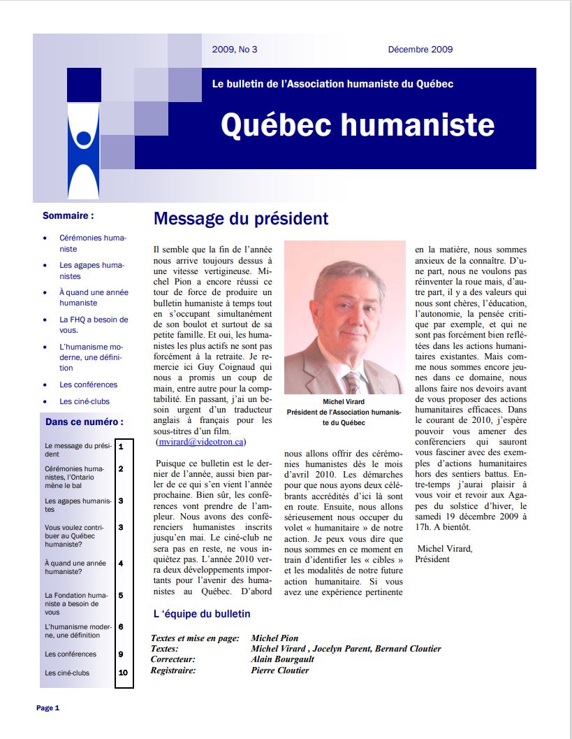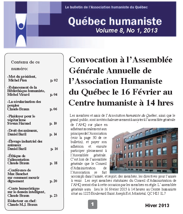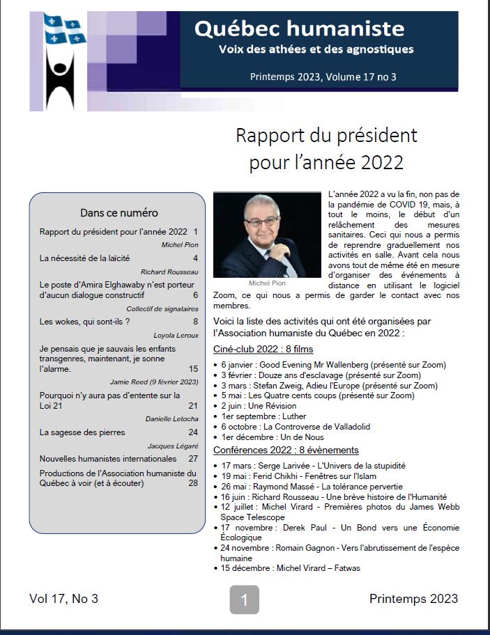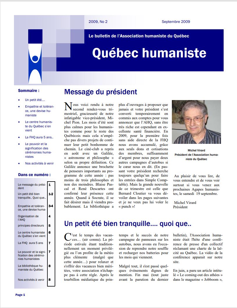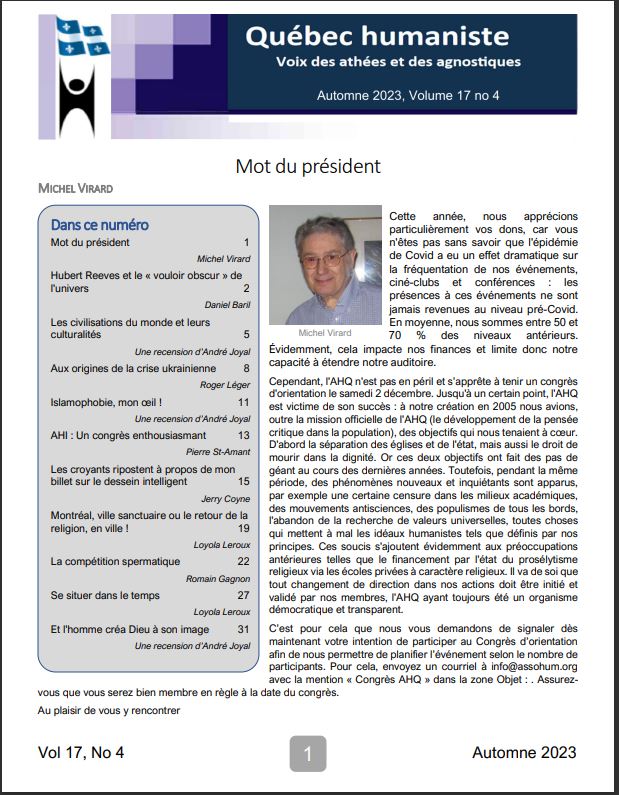 - Annonces diverses pour les membres de l’Association humaniste du Québec