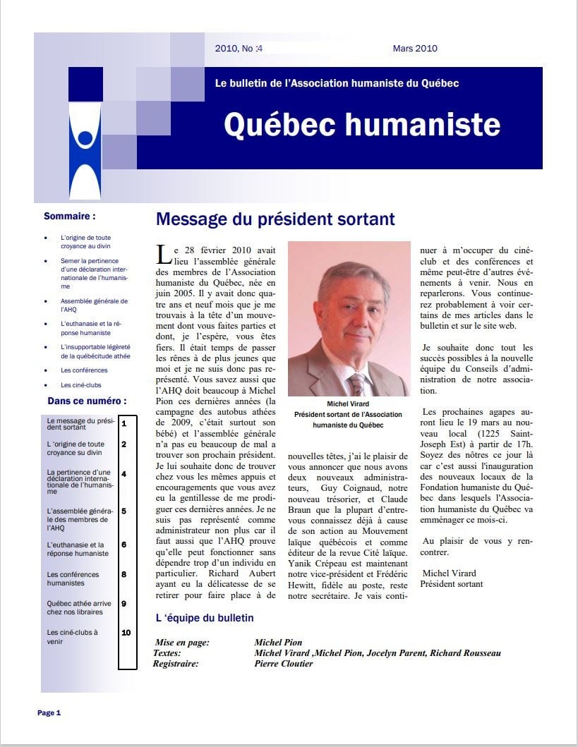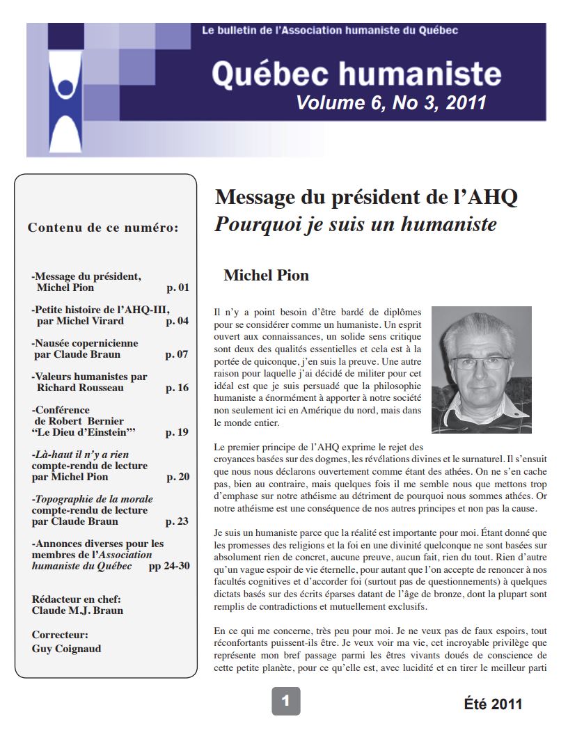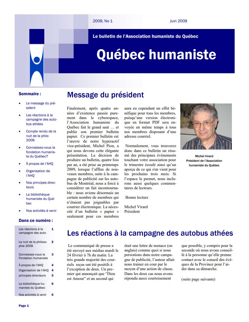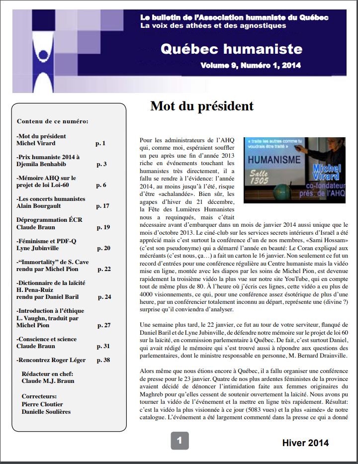 - Annonces diverses pour les membres de l’Association humaniste du Québec